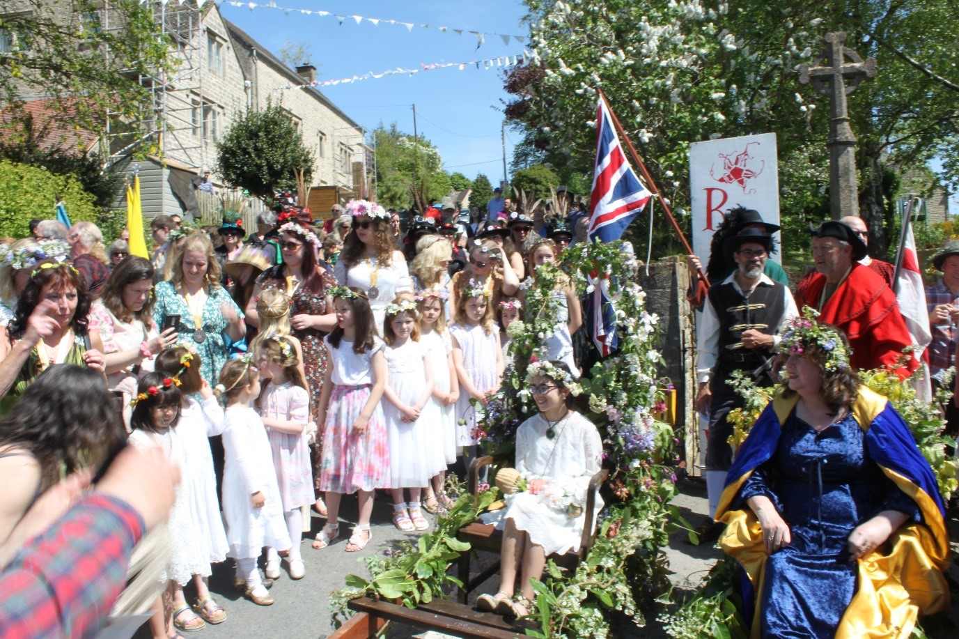 Thanks to the Estella Canziani Post-graduate Bursary for Research 2022, I was able to undertake field research on 7th May 2022 at the Randwick Wap in Gloucestershire in order to understand the custom and its meaning to those in attendance. This was conducted as the first field trip for my ongoing PhD research into folklore and identity in southwest England. I have decided to conduct interviews at folk customs in the region to better understand what these events mean to the people who are attending, organising, and supporting them so as to appreciate the meaning of folk customs from the 'folk'. I have included the Randwick Wap in my research as an example of a southwest custom with unknown or unclear origins that was affected by the different stages of folk revival or resurgence, having been halted in the late-nineteenth century due to the associated drunken behaviours and revived and reinterpreted as a May festival in the 1970s. The event takes place on the Saturday of the second weekend of May, with 2022 marking the 50th anniversary of the revival of the Wap. The increase in attendance that was noticed by a number of respondents was an illustration of the local interest and support of the event. As it was an anniversary, the former Queens and Mayors had all been invited to return, receive a medal of recognition, and walk in the procession. The draw of the Wap was demonstrated by the number of returning members of the Wap court, some of whom had travelled considerable distances to participate once more.