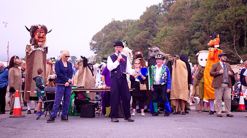 Image: Line-up of Hobby Horses at Sidmouth Festival, 2019; photo via Wikimedia Commons